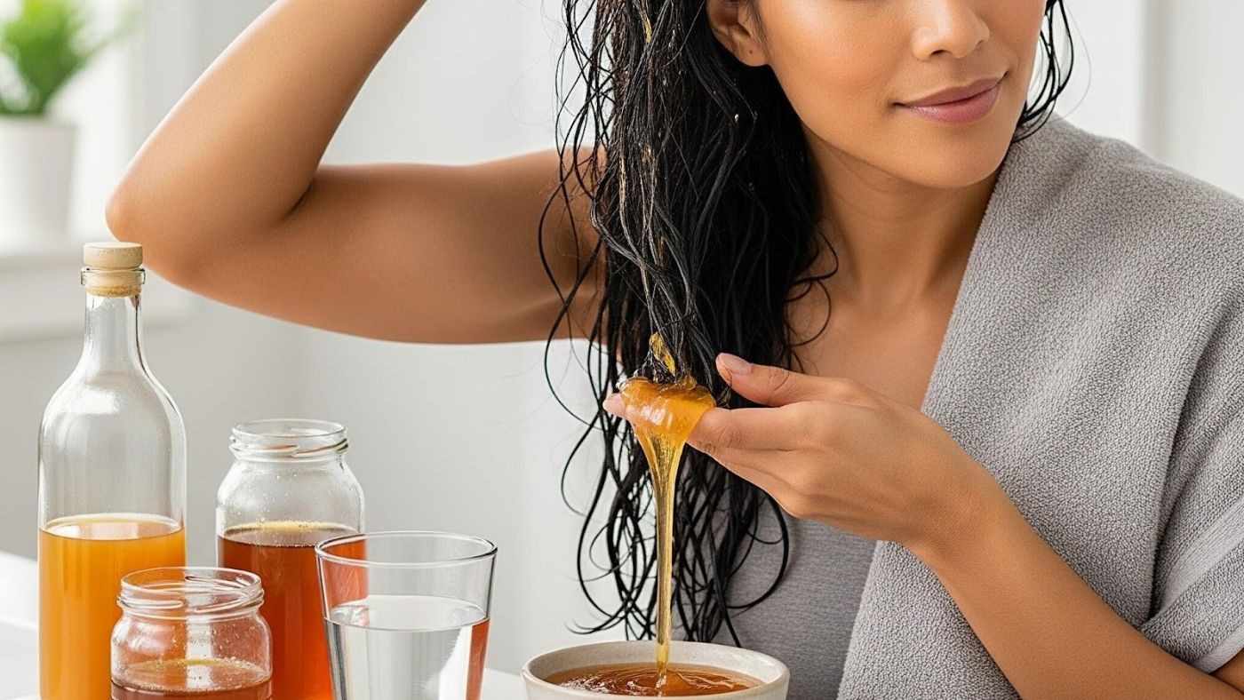 This is your reset button when hair styling gel has built up on your hair or when hard water has left it feeling coated. Mix two tablespoons of raw apple cider vinegar with one tablespoon of honey and half a cup of warm water. The vinegar’s acidity closes your hair cuticle and removes mineral buildup, while honey ensures you’re not stripping away necessary moisture.